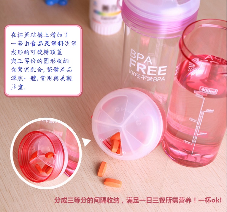 本產品採用食品級塑膠材質,環保健康,材質堅固耐用,杯子密封性絕佳,底部密封設計,最大限度的減少了漏水的可能性。瓶身不含任何雜質,方便實用。