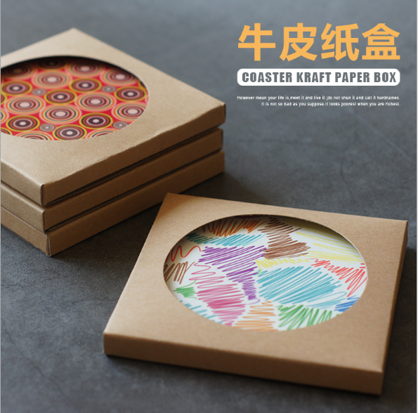 杯墊底部為軟木止滑材質, 單入質感牛皮紙盒包裝