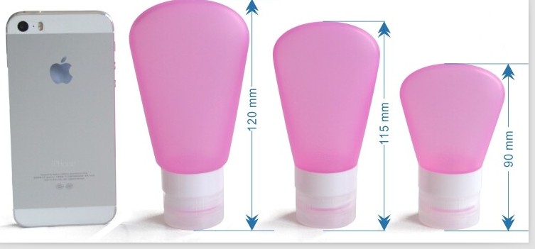 【材質】:旅行瓶子採用液態矽膠製成,符合FDA標準,安全無毒,產品呈半透明。